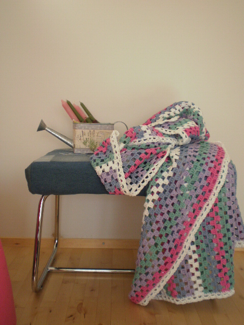 maljakon alla on jämälangoista virkattuja isoäidinneliöitä, josta joskus ehkä kun saan aikaiseksi, tulee tyyny.. en mä noista liinoista oikeen perusta..
